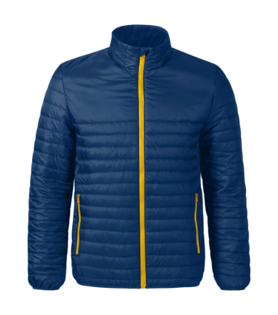 foldable into the inner pocket, lightweight quilted warm fabric , cut with side parts, full-length molded zipper with chin protection, pockets with molded zipper, inner pocket with velcro, access for branding in side lining, trimmed by elastic stripe