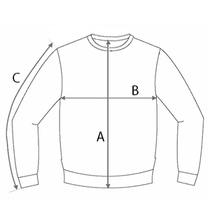 | Size | Body Length (A) | Chest Width (B) | Sleeve Length (C) |