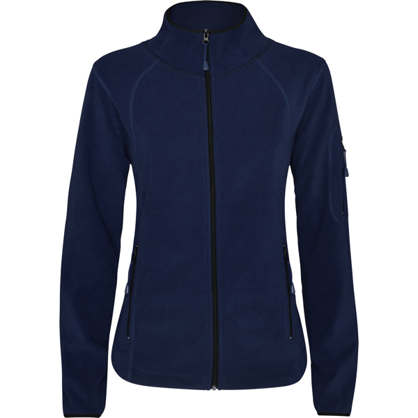 Flīsa jaka āra sporta veidiem, ar augstu apkakli un garām rievotām piedurknēm kontrastam. Priekšējais rāvējslēdzējs. Kabata ar rāvējslēdzēju kreisajā piedurknē un priekšā, abas kontrastainas. Nošuves priekšējā daļā uz krūtīm. Elkoņu polsteri no tā paša auduma.